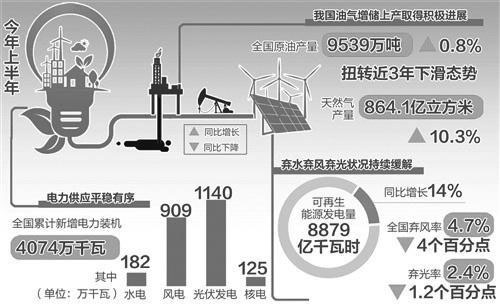 今年上半年,國家能源局通過建立健全可再生能源電力消納保障機制,進一步完善新能源發(fā)電項目競爭性配置機制,積極采取措施加大力度消納可再生能源,棄水棄風棄光狀況持續(xù)緩解。