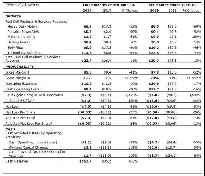 中國儲能網(wǎng)訊:近日,巴拉德動力系統(tǒng)公司公布了其截至2019年6月30日的第二季度綜合財務業(yè)績。