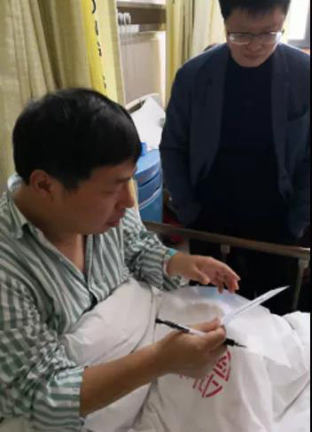 周錫衛(wèi)抓拍下的“珍藏版照片”,朱強在病榻上辦公