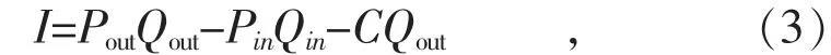 式中:I 為儲(chǔ)能系統(tǒng)的年收益額;Pin和Pout分別為儲(chǔ)能電價(jià)和用電電價(jià);Qin和Qout分別為儲(chǔ)能電量和用電量;C 為儲(chǔ)能裝置的度電成本。
