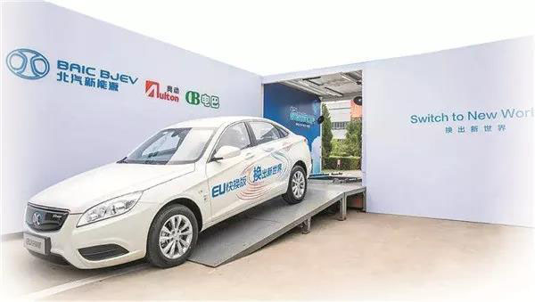 直到2016年一季度,北京市內(nèi)200輛換電出租車正式投運,北京市電動出租車的大軍中才出現(xiàn)了換電車型的身影。同年4月26日,北京首家新能源出租車換電站在東南四環(huán)外博大路的中石化加油站正式啟用。