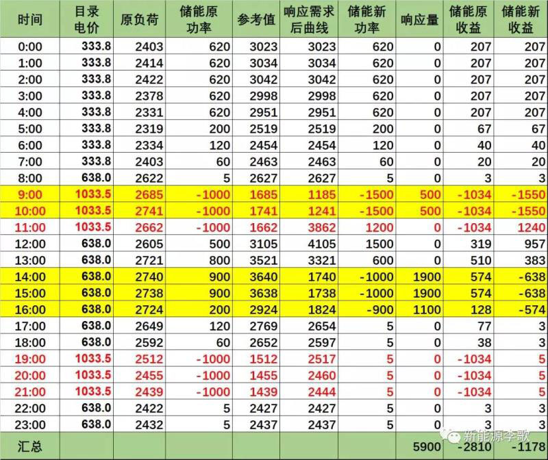 2、案例中,下午時(shí)段,用戶側(cè)負(fù)荷曲線比參考曲線有很大幅度降低,但是儲(chǔ)能系統(tǒng)受到上午時(shí)段的響應(yīng)影響,收益大幅減少。