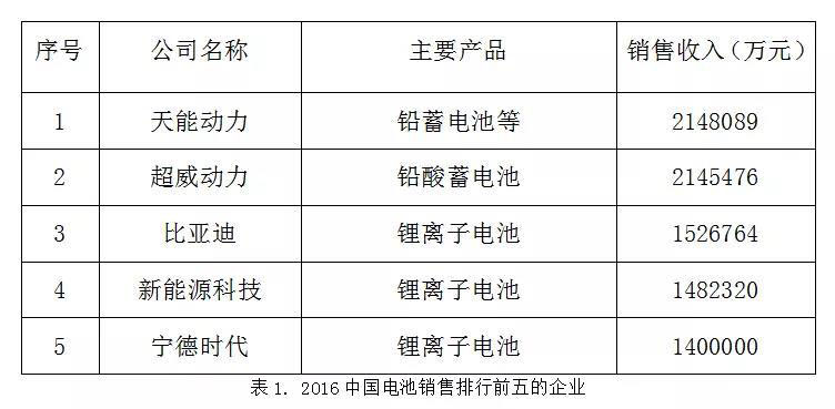 2016年,天能動力以營業(yè)收入214.81億元,位列第一;超威動力收入214.55億元,位居第二;比亞迪收入152.68億元,位居第三;寧德時代收入140億元,位居第五。