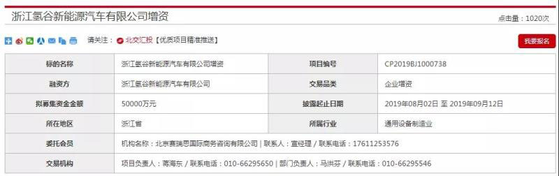 8月13日,北京產(chǎn)權(quán)交易所網(wǎng)站消息顯示,浙江氫谷新能源汽車(chē)有限公司(下稱(chēng)“浙江氫谷”)增資項(xiàng)目在北京產(chǎn)權(quán)交易所正式掛牌。該項(xiàng)目擬募集資金5億元,擬征集投資方1至2個(gè),新進(jìn)股東合計(jì)持股比例不高于10%,所募集資金將主要用于氫燃料電池生產(chǎn)線(xiàn)設(shè)備、研發(fā)費(fèi)用、訂單完成所需流動(dòng)資金。