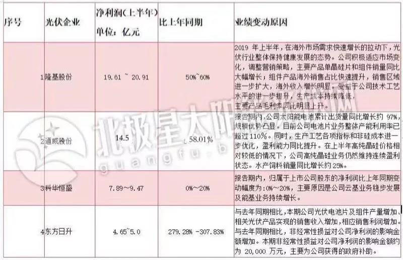 時至8月,光伏企業(yè)陸續(xù)公布了上半年業(yè)績預報告。在統(tǒng)計的20家光伏上市公司中,共有15家企業(yè)在上半年盈利。其中隆基股份預期凈利潤達19.61 ~ 20.91 億元,堪稱盈利王。根據(jù)通威14日公布的上半年財報,報告期內(nèi)凈利潤為14.5億元,同比增長58%,排行第二??迫A恒盛以7.89~9.47億元,位列第三。