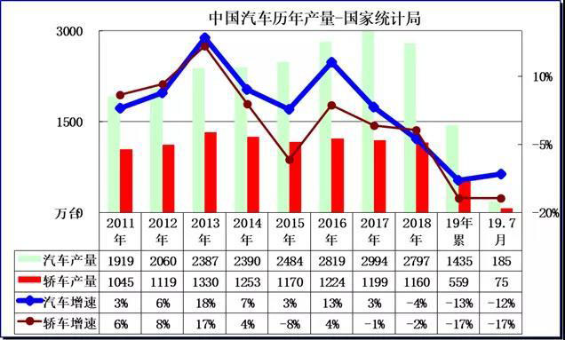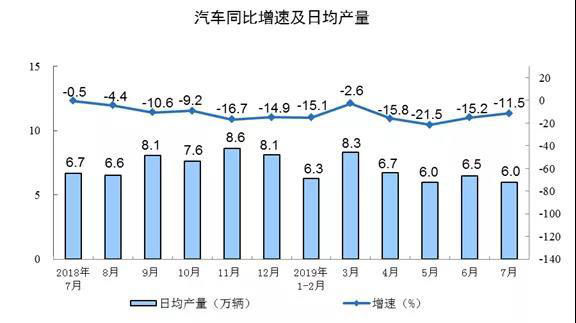 2. 2019年1-7月汽車產(chǎn)量下行
