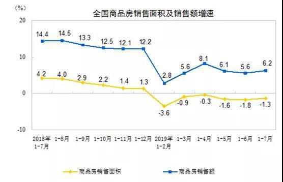 汽車生產(chǎn)、消費、投資、增加值全面為負(fù),樓市火爆對車市影響巨大。2019年1—7月份,全國房地產(chǎn)開發(fā)投資72843億元,同比增長10.6%,其中,住宅投資53466億元,增長15.1%,仍相對較高。1-7月商品房銷售額83162億元,增長6.2%,其中,住宅銷售額增長9.2%。