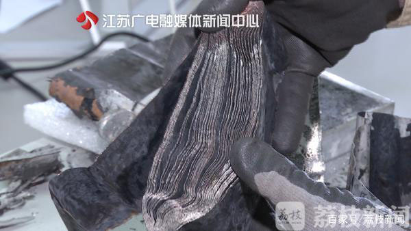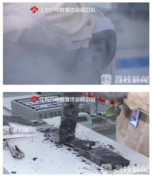 經(jīng)過(guò)燃燒之后的鋰電池,內(nèi)部會(huì)產(chǎn)生什么變化呢?實(shí)驗(yàn)人員對(duì)這塊鋰電池,進(jìn)行了現(xiàn)場(chǎng)切割……