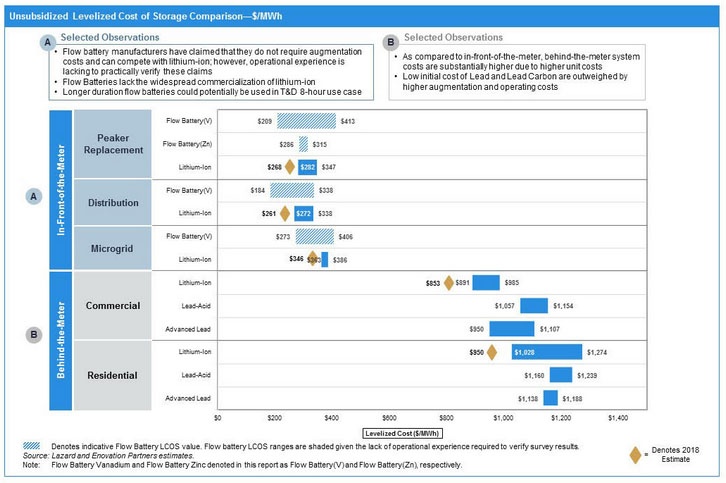 Lazard公司調(diào)查的各種電池儲能系統(tǒng)安裝成本