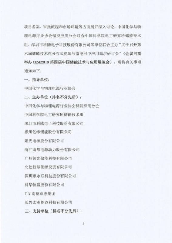為進(jìn)一步推進(jìn)儲(chǔ)能技術(shù)在分布式能源與微電網(wǎng)中應(yīng)用的項(xiàng)目規(guī)劃、安全施工、系統(tǒng)集成解決方案、運(yùn)營模式、電網(wǎng)接入、標(biāo)準(zhǔn)體系、項(xiàng)目備案、審批流程和市場(chǎng)環(huán)境等方面展開深入討論,中國化學(xué)與物理電源行業(yè)協(xié)會(huì)儲(chǔ)能應(yīng)用分會(huì)聯(lián)合中國科學(xué)院電工研究所儲(chǔ)能技術(shù)組、深圳市科陸電子科技股份有限公司等單位聯(lián)合主辦“關(guān)于召開第六屆儲(chǔ)能技術(shù)在分布式能源與微電網(wǎng)中應(yīng)用高層研討會(huì)”(會(huì)議同期舉辦CESE2019第四屆中國儲(chǔ)能技術(shù)與應(yīng)用展覽會(huì)),現(xiàn)將有關(guān)事項(xiàng)通知如下: