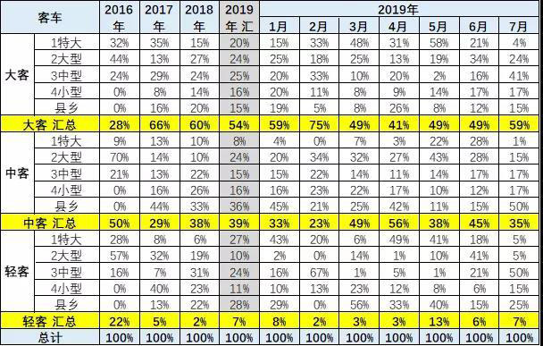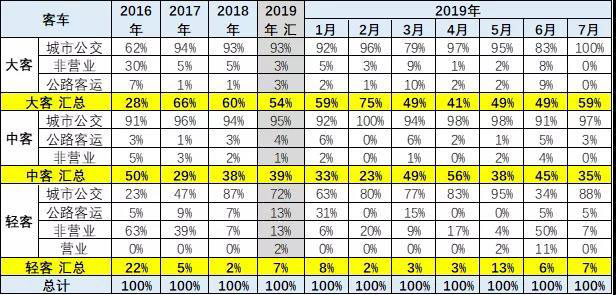 新能源客車的城市公交類占比逐步提升。大客2019年公交的占比相對2018年同期基本持平。