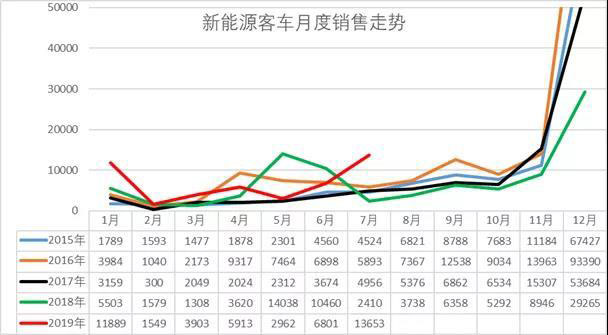 新能源客車上牌走勢相對復(fù)雜,雖然總體1-7月同比增長較好,但仍屬于相對較低水平。