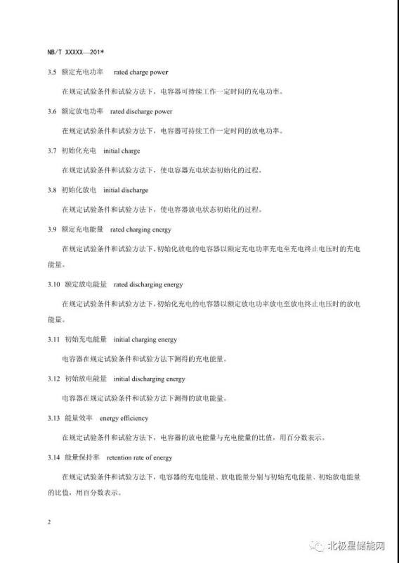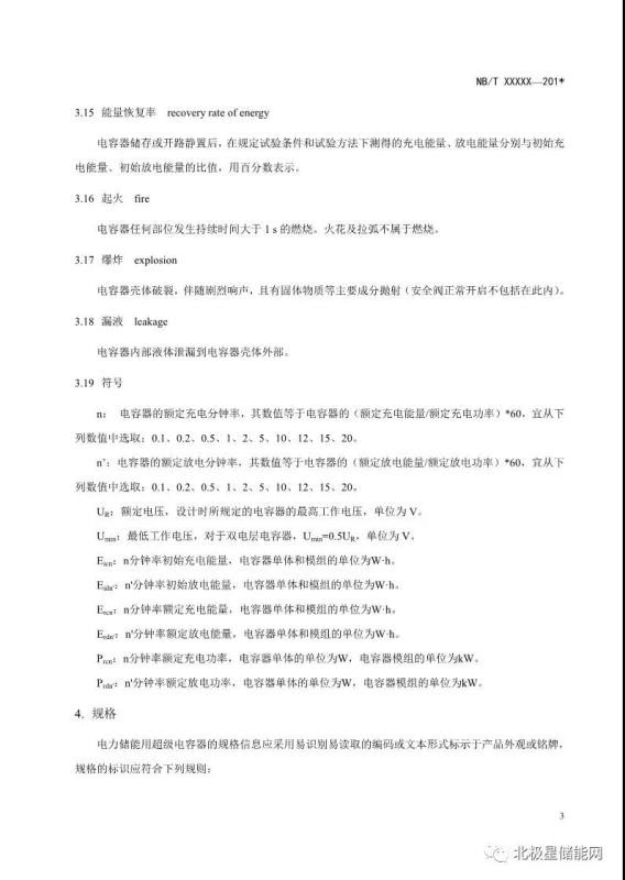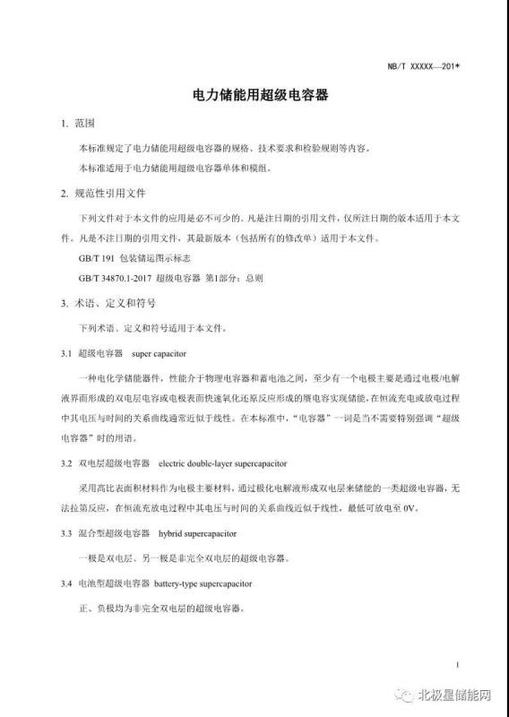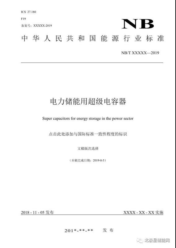 《電力儲(chǔ)能用超級(jí)電容器》能源行業(yè)標(biāo)準(zhǔn)征求意見(jiàn)稿