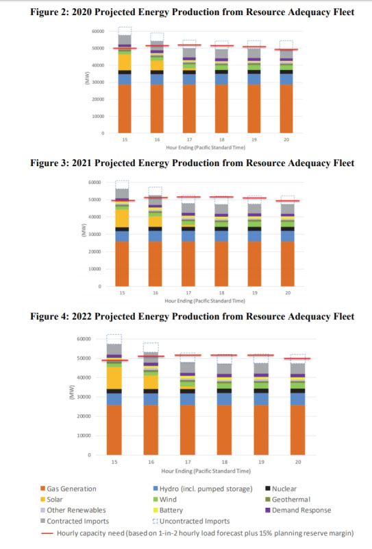 在2020年,在下午17點(diǎn)到19點(diǎn)峰值需求結(jié)束的時(shí)間內(nèi),資源充足性支持的裝機(jī)容量短缺分別為2,200MW、2,300 MW、1,500MW。在2021年,在下午17點(diǎn)到19點(diǎn)峰值需求結(jié)束的時(shí)間內(nèi),容量短缺分別提高到4,000MW、4,400MW、3,800MW、2,200MW。而在2022年下午17點(diǎn)到19點(diǎn)峰值需求結(jié)束的時(shí)間內(nèi),容量短缺分別為3,900MW、4,700MW、4,200MW、2,600 MW。