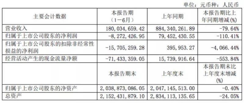 8月18日,玉龍股份(601028)半年報(bào)公告顯示,1-6月公司實(shí)現(xiàn)營(yíng)收1.8億元,同比下滑79.64%;歸屬于上市公司股東的凈利潤(rùn)-827.2萬(wàn)元,較去年同期7945.2萬(wàn)同比下滑110.41%。