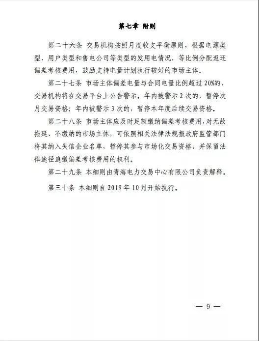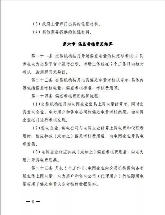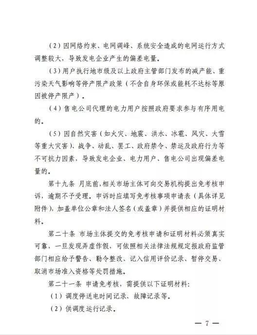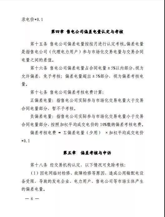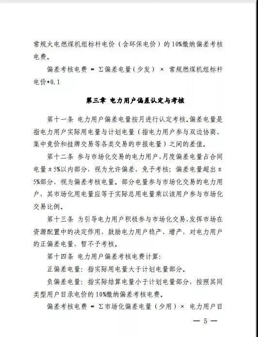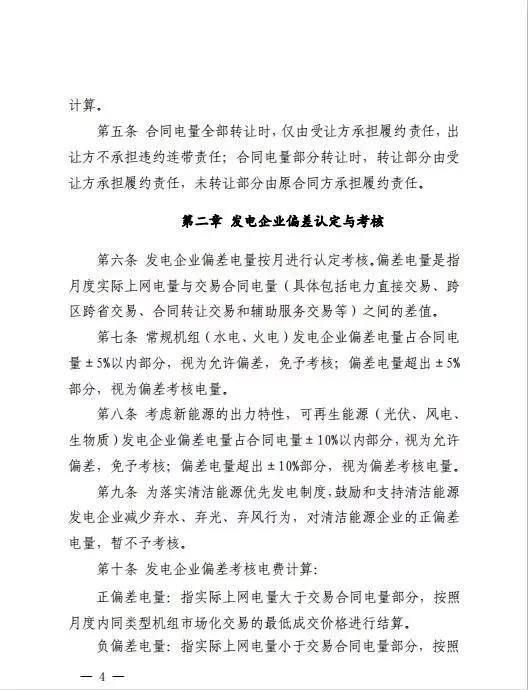 發(fā)電企業(yè):常規(guī)機組(水電、火電)發(fā)電企業(yè)偏差電量占合同電量±5%以內(nèi)部分,視為允許偏差,免予考核;可再生能源(光伏、風電、生物質(zhì))發(fā)電企業(yè)偏差電量占合同電量的±10%以內(nèi)部分,視為允許偏差,免予考核。