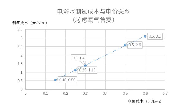 圖:電解水制氫成本與電價(jià)關(guān)系-考慮副產(chǎn)氧氣售賣
