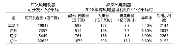 按照上述定義,東北地區(qū)用于廣義制氫的風(fēng)能資源可開發(fā)量保守估計(jì)可達(dá)3.2億千瓦,而狹義制氫年可利用的棄風(fēng)等效電量達(dá)15.1億千瓦時(shí)。