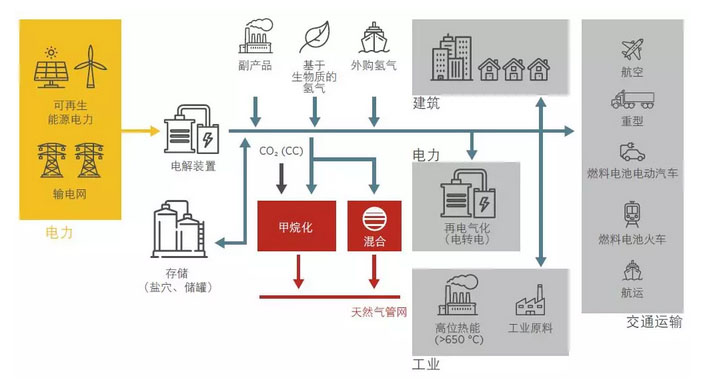 圖:通過氫氣將可再生能源整合至終端使用