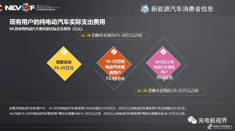 調(diào)研顯示,在購(gòu)買(mǎi)純電動(dòng)汽車(chē)的用戶(hù)中,10-20萬(wàn)純電動(dòng)汽車(chē)現(xiàn)有用戶(hù)支出均值為15.99萬(wàn)元,20萬(wàn)以上純電動(dòng)汽車(chē)現(xiàn)有用戶(hù)支出均值為35.8萬(wàn)元,調(diào)查總體支出均值為29.49萬(wàn)元。當(dāng)然,還有一些10萬(wàn)元以下的入門(mén)級(jí)產(chǎn)品不在調(diào)研范圍內(nèi)?!靶履茉窜?chē)要不然貴,要不然就特別便宜,中間部分特別少,卻是需求最大的群體”,王都表示,三四十萬(wàn)的高品質(zhì)電動(dòng)車(chē)可選車(chē)型很少,這一塊市場(chǎng)亟待填補(bǔ)。