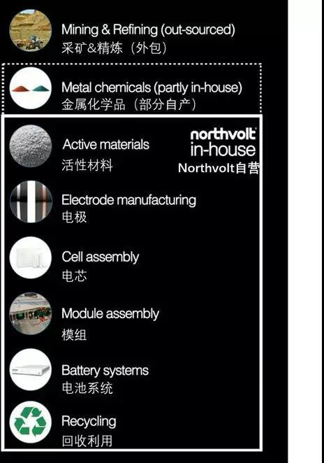 全球采購的供應(yīng)鏈很長,Northvolt盡可能把電池生產(chǎn)制造的更多環(huán)節(jié)都納入自身業(yè)務(wù),由于垂直融合,產(chǎn)線使用數(shù)據(jù)化控制,所有整個供應(yīng)鏈?zhǔn)强勺粉櫥厮莸摹?