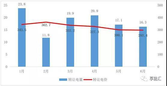 1-6月,共組織6次發(fā)電合同轉讓協(xié)商交易,累計成交電量31.53億千瓦時,平均成交價格270.8厘/千瓦時,主要出讓方為省內關停的燃煤機組。