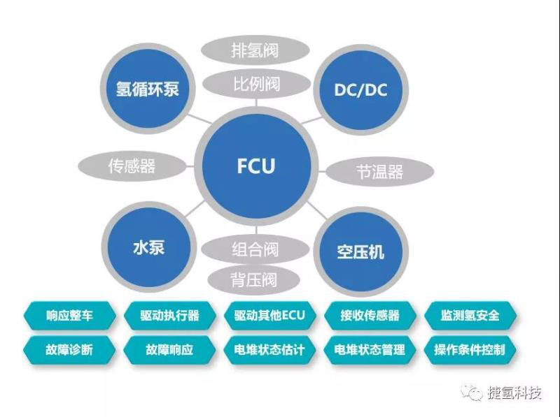 在燃料電池控制系統(tǒng)中,燃料電池系統(tǒng)控制器(Fuel-cell Control Unit簡稱FCU)負責(zé)接收整車的控制指令,協(xié)調(diào)燃料電池系統(tǒng)內(nèi)的其他控制器和執(zhí)行器工作,為車輛發(fā)出所需功率的電能。同時,F(xiàn)CU還具有實施監(jiān)測的功能,它能監(jiān)測傳感器狀態(tài),實時診斷整個系統(tǒng)的故障,并在故障發(fā)生時及時“命令”系統(tǒng)做出反應(yīng),避免故障傷害電堆。所以,燃料電池系統(tǒng)控制器相當(dāng)于整個系統(tǒng)控制的大腦,它對提升燃料電池經(jīng)濟性、耐久性、動力性以及可靠性起著至關(guān)重要的作用。