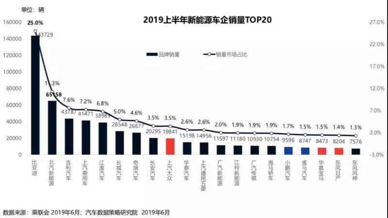 根據(jù)乘聯(lián)會的數(shù)據(jù),在2019年的上半年,中國賣出去了57.5萬輛新能源乘用車,同比增長了65%,這銷量也占到了全球新能源汽車銷量的50%。