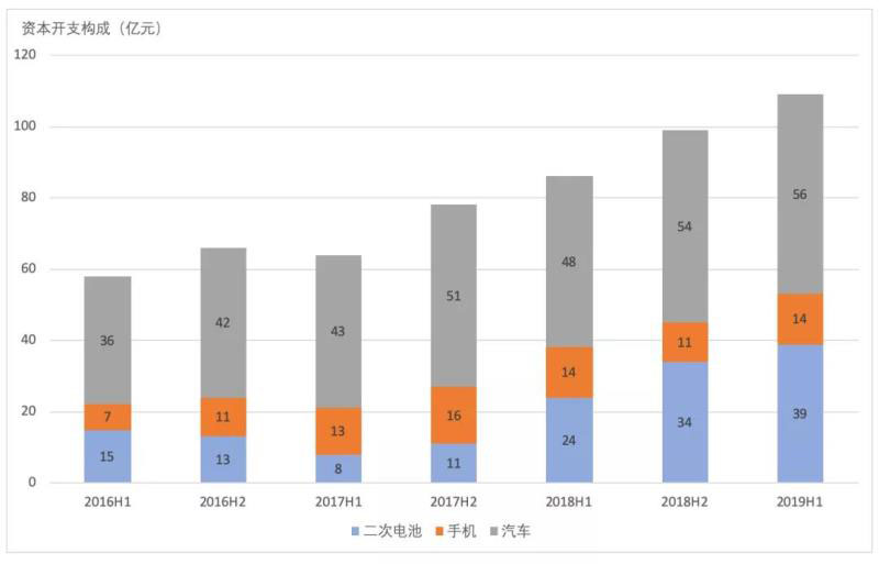 第一組數(shù)據(jù)是,在2019年前6個月,該公司為產(chǎn)能建設(shè)支出的投資資金達(dá)到了137.8億元,去年同期僅為96.6億元,同比增加42.65%。