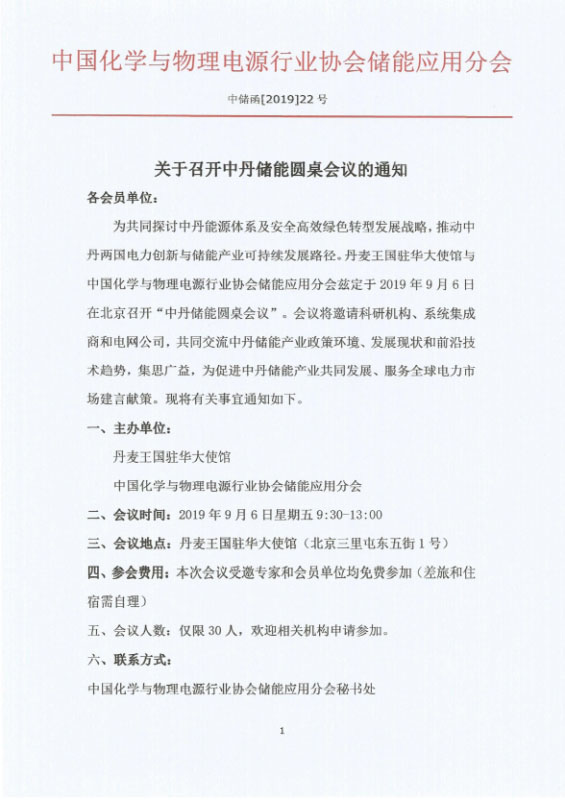 為共同探討中丹能源體系及安全高效綠色轉(zhuǎn)型發(fā)展戰(zhàn)略,推動(dòng)中丹兩國(guó)電力創(chuàng)新與儲(chǔ)能產(chǎn)業(yè)可持續(xù)發(fā)展路徑。丹麥王國(guó)駐華大使館與中國(guó)化學(xué)與物理電源行業(yè)協(xié)會(huì)儲(chǔ)能應(yīng)用分會(huì)茲定于2019年9月6日在北京召開(kāi)“中丹儲(chǔ)能圓桌會(huì)議”。會(huì)議將邀請(qǐng)科研機(jī)構(gòu)、系統(tǒng)集成商和電網(wǎng)公司,共同交流中丹儲(chǔ)能產(chǎn)業(yè)政策環(huán)境、發(fā)展現(xiàn)狀和前沿技術(shù)趨勢(shì),集思廣益,為促進(jìn)中丹儲(chǔ)能產(chǎn)業(yè)共同發(fā)展、服務(wù)全球電力市場(chǎng)建言獻(xiàn)策。