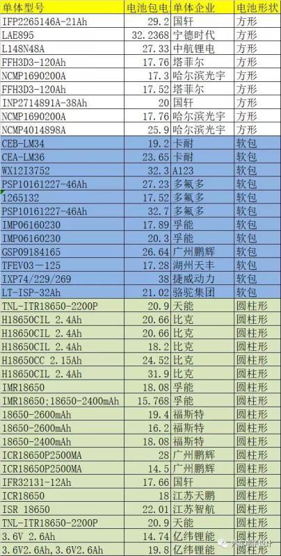 我們從2017年開(kāi)始,2017年5月份的電芯情況如下圖所示,主要是18650和軟包為主的,由于A00級(jí)別的電動(dòng)汽車(chē)當(dāng)時(shí)普遍只有150km,帶電量從15kWh-20kwh左右,所以整體的配置情況是小電芯做小電池。