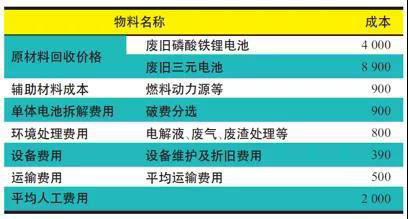 通過調(diào)研數(shù)據(jù),可以看出回收及拆解每噸三元電池的平均成本為13264元,回收及拆解每噸磷酸鐵鋰電池的平均成本為8364元。