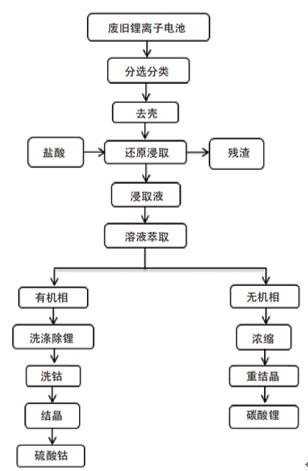 [20] Kang J, Senanayake G, Sohn J,et al. Recovery of cobalt sulfate from spent lithium ion batteries by reductiveleaching and solvent extraction with Cyanex 272[J]. Hydrometallurgy,2010,100(3):168-171.