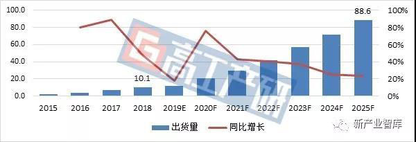 2015-2025年全球軟包動(dòng)力電池出貨量分析及預(yù)測(cè)(GWh)