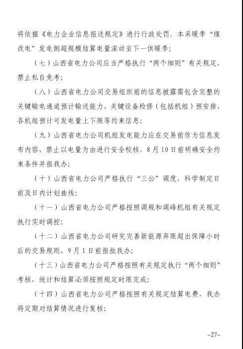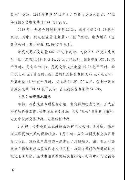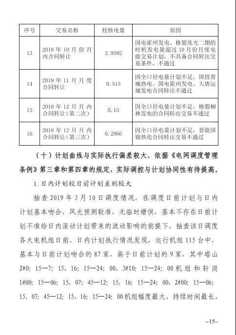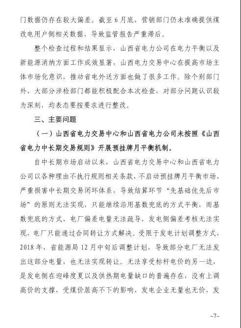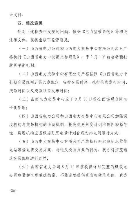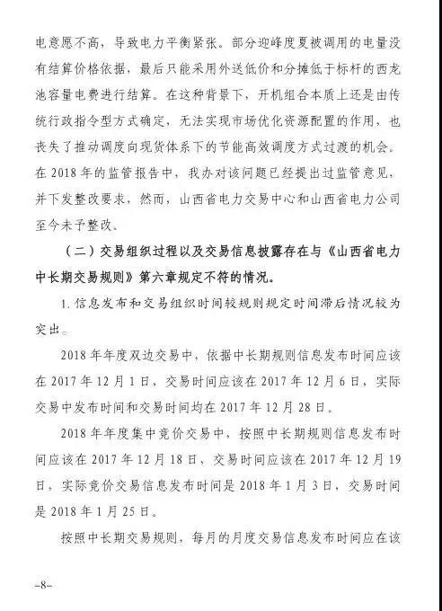 針對發(fā)現(xiàn)的問題,報告提出監(jiān)管意見:山西省電力公司和山西電力交易中心有限公司于9月1日前啟動預掛牌月平衡機制;9月30日前,山西電力交易中心將全面實現(xiàn)合同電子化管理等。