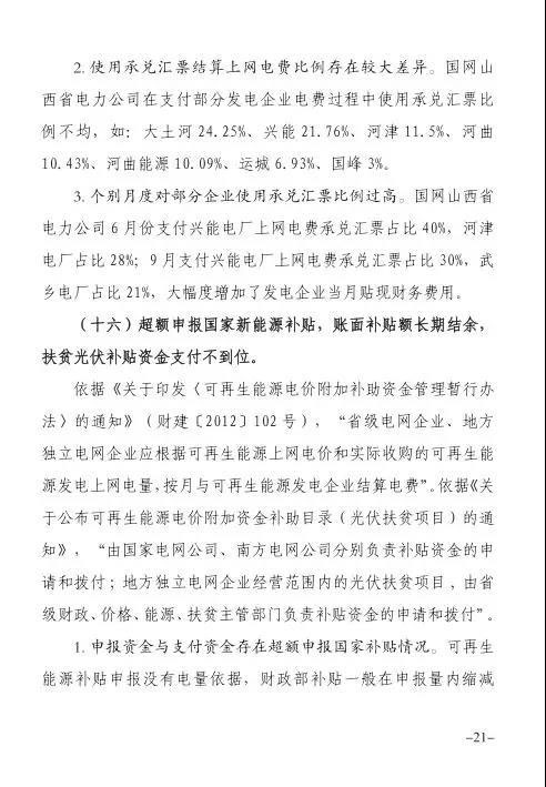 日前,山西省能源監(jiān)管辦發(fā)布《2018-2019年度山西電力調(diào)度交易秩序監(jiān)管報告》,報告指出,超額申報國家新能源補貼,賬面補貼額長期結(jié)余,扶貧光伏補貼資金支付不到位。2012-2018共收到可再生能源補貼資金150億元(不含稅),實際支出148.18億元(含稅);未支付光伏扶貧補貼金額約400萬元。