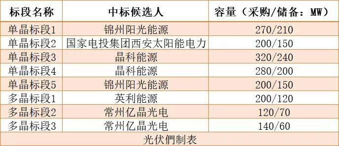 近日,國(guó)家電投2019年度第五十八批組件集采組件集采公示中標(biāo)候選人,晶科能源(600MW)、錦州陽(yáng)光能源(470MW)、常州億晶光電(260MW)、國(guó)家電投集團(tuán)西安太陽(yáng)能電力(200MW)、英利能源(200MW)入圍。需要注意的是,上述規(guī)模僅以采購(gòu)容量核算,詳細(xì)中標(biāo)規(guī)模見(jiàn)下表。