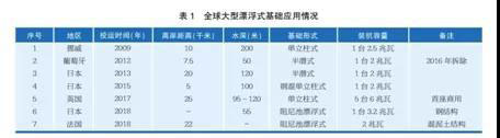 從國外技術(shù)發(fā)展情況來看,多種類型的漂浮式基礎(chǔ)已實(shí)現(xiàn)樣機(jī)安裝,并逐步完善商用測(cè)試,主要集中于歐洲和日本。全球首個(gè)商業(yè)運(yùn)行海上漂浮式風(fēng)電場(chǎng)蘇格蘭Hywind項(xiàng)目,裝機(jī)30兆瓦,于2017 年全面投產(chǎn)。目前漂浮式海上風(fēng)電開發(fā)還屬于前沿技術(shù),其中電纜牽引安裝和防護(hù)接頭、系泊系統(tǒng)連接器、漂浮式風(fēng)機(jī)荷載和功率測(cè)試等多項(xiàng)關(guān)鍵技術(shù)受到專利保護(hù)(見表1)。