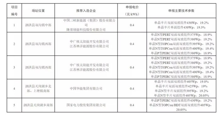 今日,泗洪領(lǐng)跑者基地獎(jiǎng)勵(lì)指標(biāo)中標(biāo)公示。中廣核/林洋聯(lián)合體、三峽+隆基聯(lián)合體、國(guó)電投、華能等4家企業(yè)/聯(lián)合體獲得基地開發(fā)權(quán)。截止現(xiàn)在,3個(gè)基地1.5GW領(lǐng)跑者獎(jiǎng)勵(lì)指標(biāo)全部分配完成。3個(gè)基地的項(xiàng)目中標(biāo)情況如下表所示。