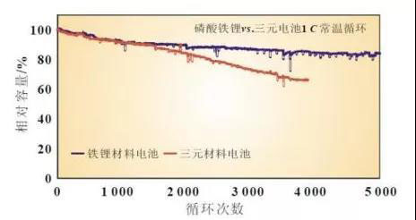 圖表20:鐵鋰與三元電池循環(huán)性能比較