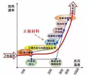 當(dāng)電芯內(nèi)部發(fā)生熱失控時(shí),一般先是SEI膜分解,然后是負(fù)極材料熱失控,再是正極材料分解,并且隨著反應(yīng)的進(jìn)行,電芯內(nèi)部放熱速率快速上升,導(dǎo)致電解質(zhì)分解,電解液燃燒等,出現(xiàn)電芯層面的熱失控,最終可能會(huì)導(dǎo)致電池包出現(xiàn)著火等現(xiàn)象。在這一系列的連鎖反應(yīng)中,如果某一個(gè)關(guān)鍵的環(huán)節(jié)被打斷,比如正極材料的熱分解沒有進(jìn)行,則可能會(huì)打斷后面的連鎖反應(yīng),從而大幅度降低動(dòng)力電池?zé)崾Э厮鶐淼钠茐摹?