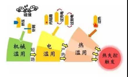 新能源汽車在使用過程中,機(jī)械濫用、電濫用和熱濫用等,包括日常使用過程中車輛發(fā)生嚴(yán)重碰撞、電池過充或過放電行為,均可能導(dǎo)致動(dòng)力電池?zé)崾Э?。?dāng)動(dòng)力電池發(fā)生熱失控時(shí),并不是突然著火或者爆炸。尤其是在電芯層面,需要經(jīng)過一系列的連鎖化學(xué)反應(yīng),才會(huì)出現(xiàn)著火等情況。