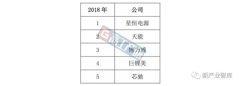 2018年中國(guó)輕型車用鋰電出貨量排名前五