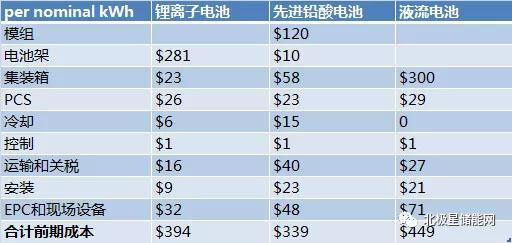 可見雖然液流電池前期一次投入成本較高,但綜合前期建設(shè)、以及全生命周期的運(yùn)營(yíng)成本以后,鋰離子電池的單次充電度電成本與液流電池相當(dāng),鉛酸電池由于后續(xù)更換電池等因素、單次充電度電成本偏高。