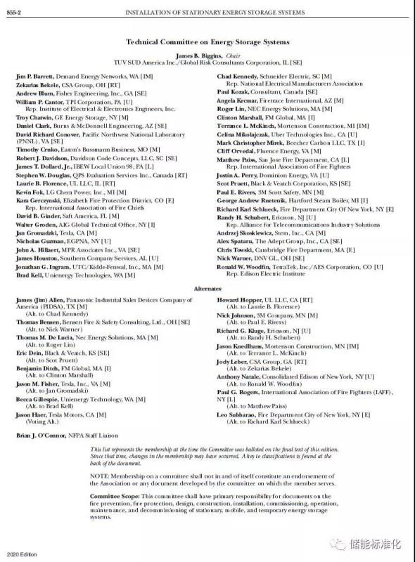 NFPA 855自2016年開始制訂,NFPA 855標(biāo)準(zhǔn)技術(shù)委員會(huì)綜合考慮了600多項(xiàng)公眾因素,收到了800多條公眾意見。TüV南德意志集團(tuán)全球風(fēng)險(xiǎn)顧問公司常務(wù)顧問James Biggins是該標(biāo)準(zhǔn)委員會(huì)的主席。