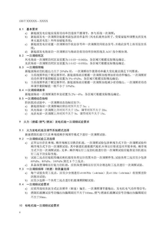 《并網(wǎng)電源一次調(diào)頻技術規(guī)定及試驗導則》國標征求意見稿