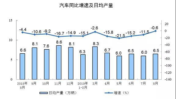 分產(chǎn)品看, 19年8月份汽車生產(chǎn)的日均汽車生產(chǎn)6.5萬臺,增長-0.6%??紤]到18年8月的6.6萬的較低增速,今年增速的表現(xiàn)相對很差。