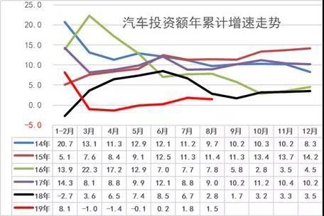 1-8月汽車投資應該是不強,但7-8月大幅改善。從1-6月的0.2%上升到19年1-8月的1.5%,上升幅度較大。7-8月投資走出負增長區(qū)間,體現(xiàn)行業(yè)的巨大拉升投資熱情。