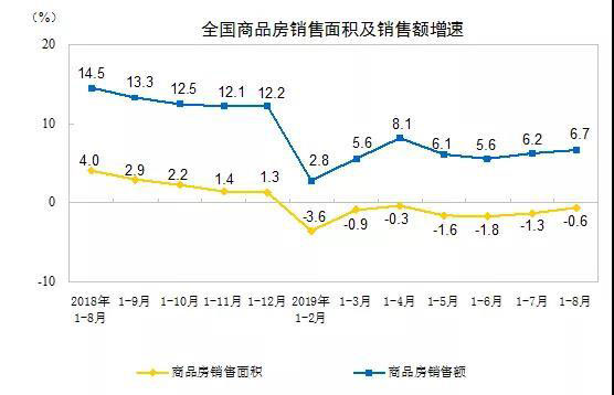 1—8月份,商品房銷售面積101849萬平方米,同比下降0.6%,降幅比1—7月份收窄0.7個百分點。其中,住宅銷售面積增長0.6%,辦公樓銷售面積下降10.8%,商業(yè)營業(yè)用房銷售面積下降13.9%。商品房銷售額95373億元,增長6.7%,增速加快0.5個百分點。其中,住宅銷售額增長9.9%,辦公樓銷售額下降11.7%,商業(yè)營業(yè)用房銷售額下降12.8%。