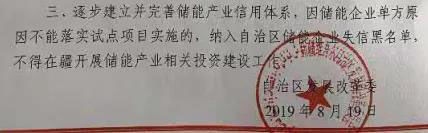 新疆方面為規(guī)范市場,基于貫徹政策的嚴肅性,在8月份還出臺了一份補充通知,對單方面不能落實試點項目實施的儲能企業(yè),將拉入失信黑名單,以后不得在新疆開展儲能產(chǎn)業(yè)相關投資建設工作。
